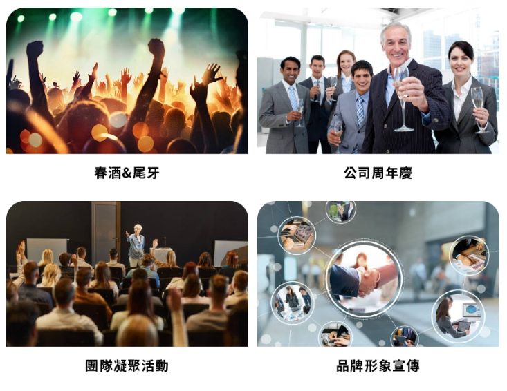 春酒、尾牙等年度大型活動慶典、公司週年慶或團隊凝聚活動,以及品牌形象宣傳,是企業進行內外部推廣的最佳核心素材。