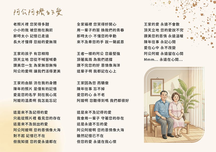 視覺與聽覺的雙重享受。我們將長輩的口述歷史與照片結合,製作成互動式電子書,讓孩子們能親耳聽見爺爺奶奶述說當年的故事。