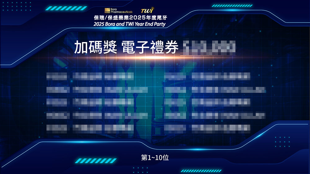 當晚最受矚目的,莫過於「馬賽克過場動畫」。在抽獎啟動的那一刻,螢幕上閃爍著節奏感強烈的馬賽克特效,隨著名單逐漸清晰,現場氣氛被推向最高潮!搭配「客製化抽獎畫面」,每位中獎者的榮耀感在震撼的視覺設計下倍增,成功打造了一場如電影首映般的精彩開獎秀。