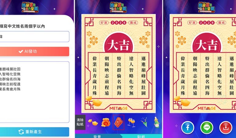 雲端數位轉型的領航者「邁達特 (MetaAge)」在年度盛典中,再次展現其創新基因!為了深化員工與品牌的連結,邁達特導入藍訊科技開發的「AI 姓名藏頭詩/籤詩」服務。這項技術不僅將 AI 應用從商務場域搬進活動現場,更將每位同仁的名字賦予藝術靈魂,成功在歡樂的氣氛中注入了深厚的智慧底蘊。