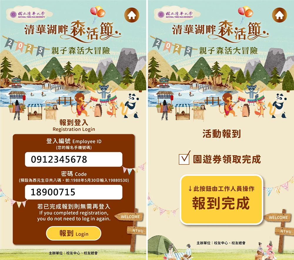 入場採 QR Code 報到方式,參與者完成登入後即可領取電子園遊券。
