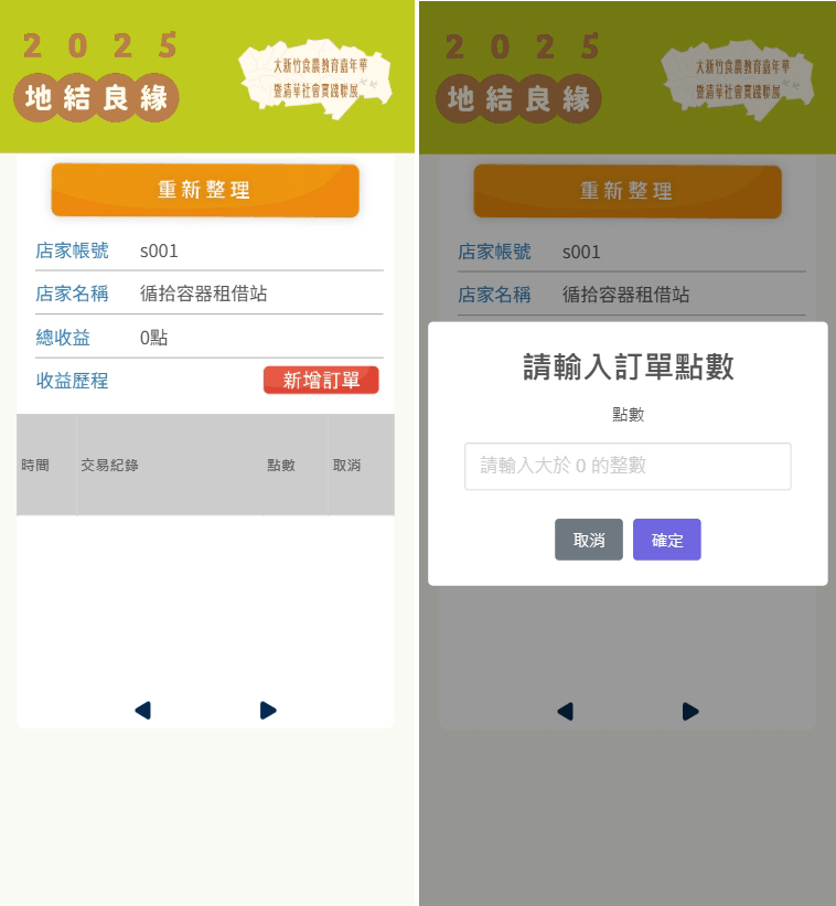 此外,現場亦結合 點數支付功能,如「循拾容器租借站」等攤位,店家登入系統後可建立訂單並輸入使用者ID進行支付。