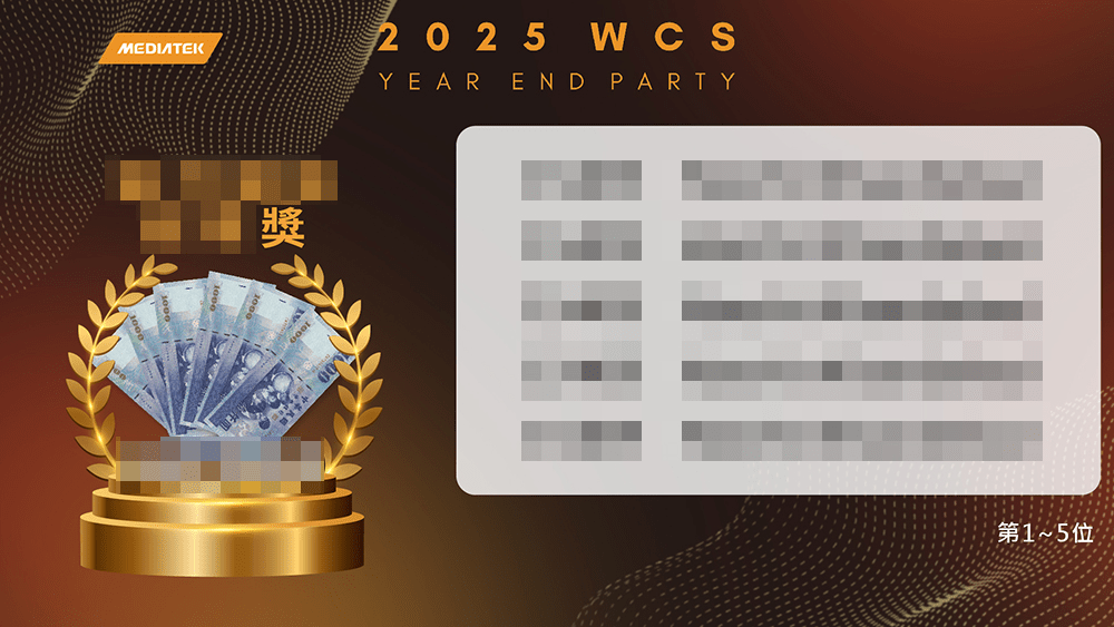 • 客製化獎項呈現:中獎名單結合聯發科專屬視覺排版,清晰標示獎項(如:現金 6,000 元)與得獎名次,確保每位得獎者在 1000 雙眼睛注視下享有滿滿榮耀。