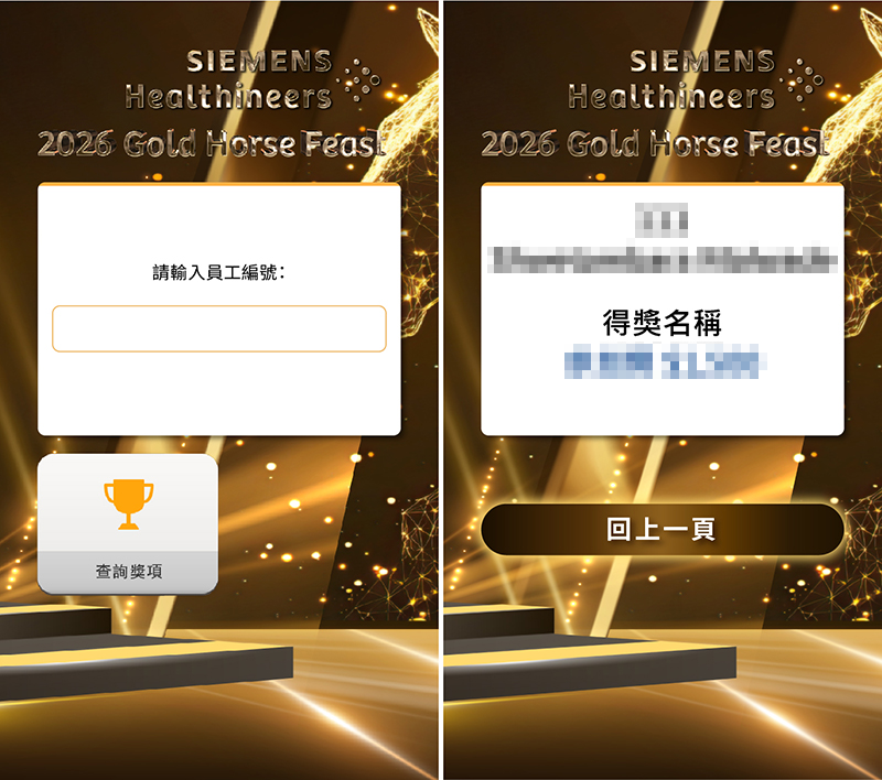 為了讓活動進度更緊湊,現場同步提供「查詢獎項系統」。同仁不需要等到活動結束去擠名單牆,只需在手機端輸入資訊,即可秒查中獎結果。這種「以人為本」的數位服務,讓每一位得獎者的喜悅都能即時分享,也展現了西門子醫療對員工體驗的高度重視。