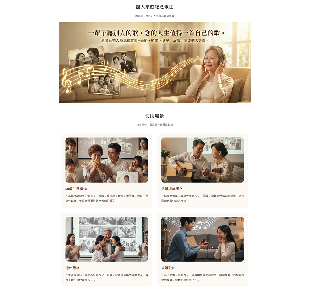 最令人驚艷的是其動畫照片製作技術,讓靜態的眼神重現靈動。此外,整合了聲音與影像的語音相簿電子書,以及專屬的個人家庭紀念歌曲,讓回憶不僅能看見,更能被聽見。對於希望親自策劃人生結尾的長輩,官網推廣的人生回顧紀念影片,更是一份讓子女能透過您的雙眼看世界的珍貴叮囑。
