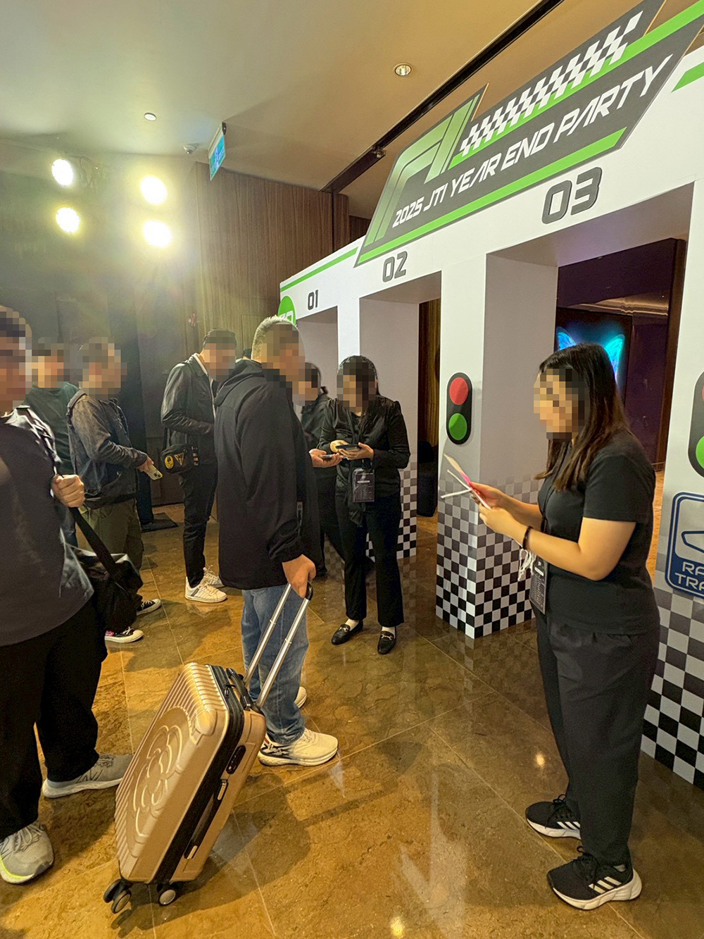 - 極速迎賓體驗: 員工只需出示個人專屬 QRCode,工作人員即可在幾秒內快速完成報到。這項尾牙互動科技徹底解決了傳統簽到流程中會場入口擁擠的問題。