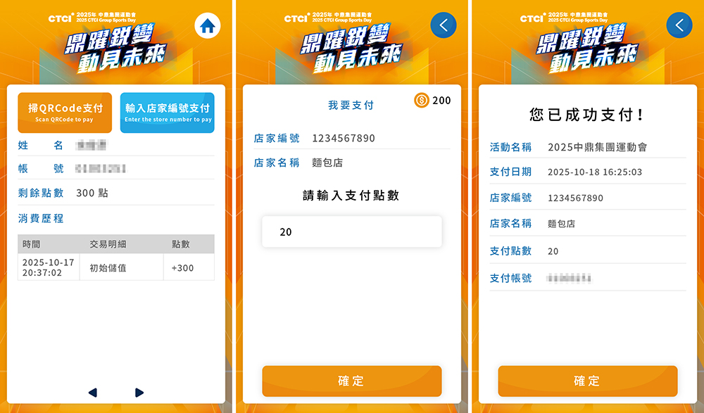 • 2025中鼎集團運動會 2000人家庭日_電子簽到系統+客製化活動選單+園遊會點數支付系統+電子摸彩系統+QRCode闖關集點兌換禮品