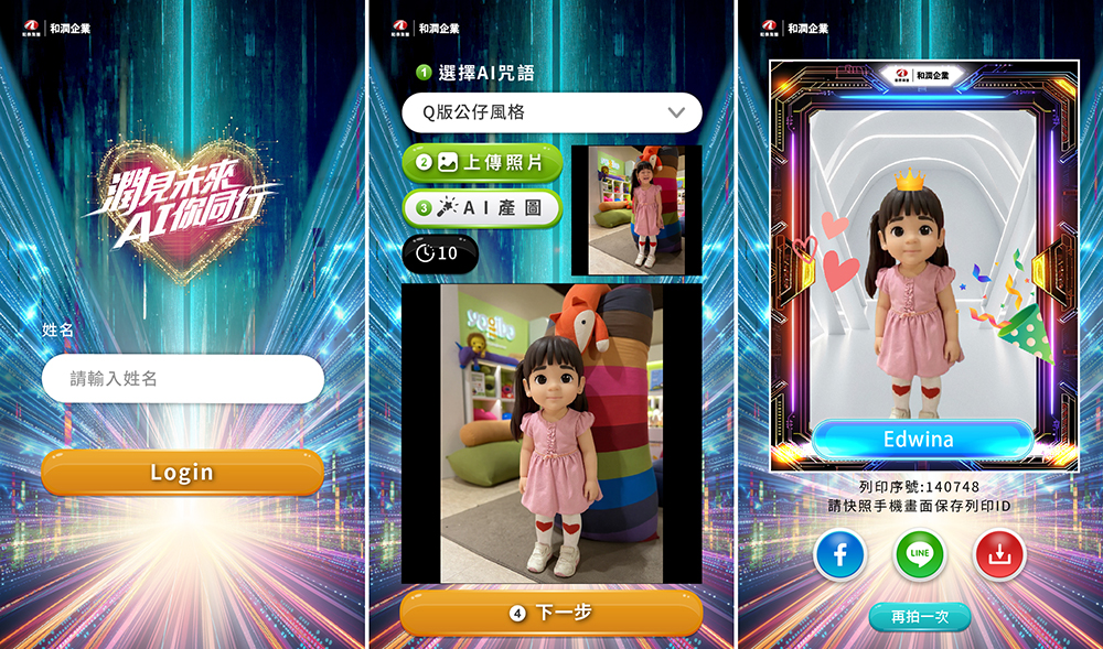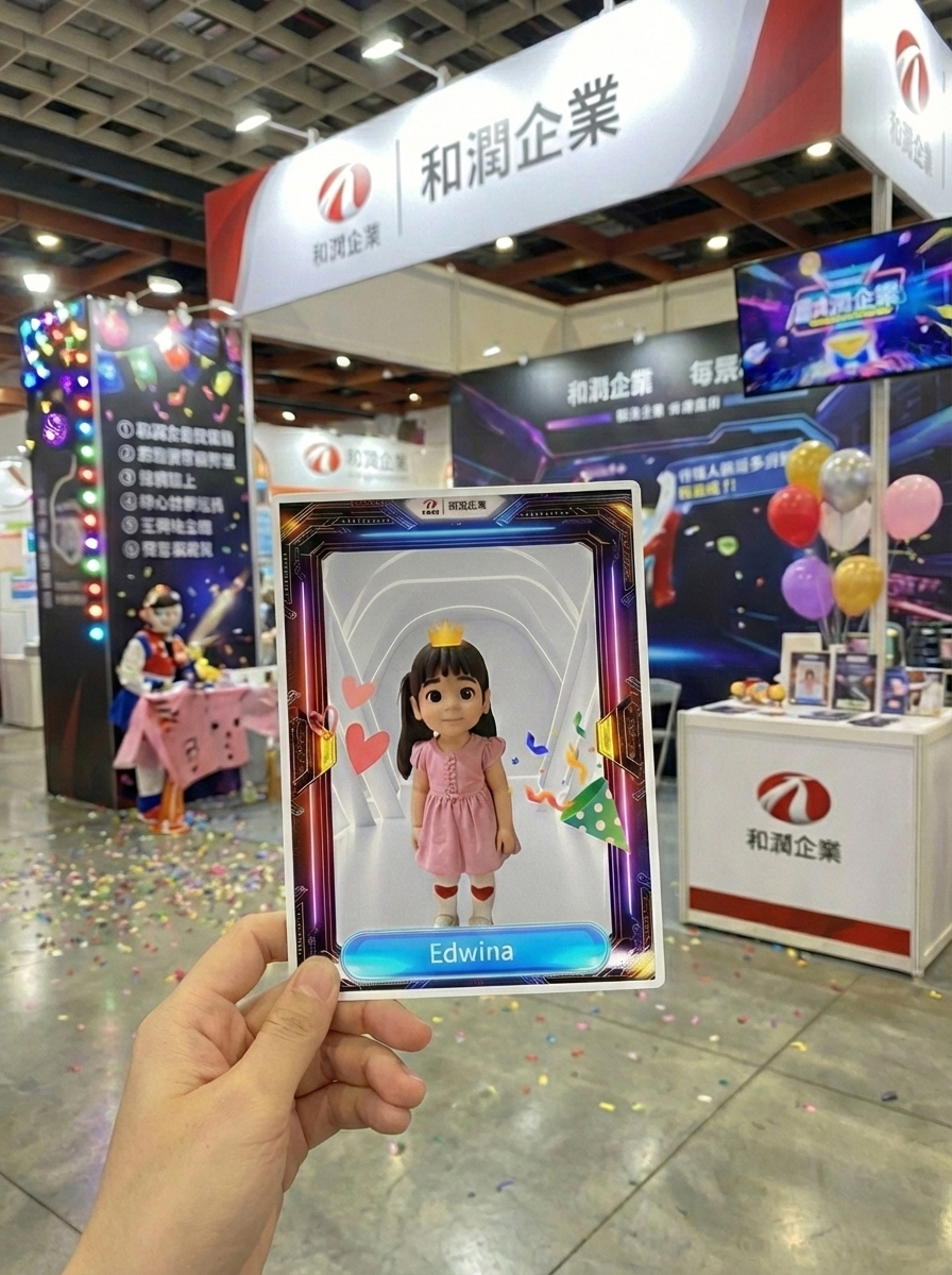 - 品牌視覺融合:生成影像自動結合和潤專屬活動圖框與背景,並可加入趣味貼圖,讓尾牙紀念照瞬間變身為具收藏價值的藝術品。