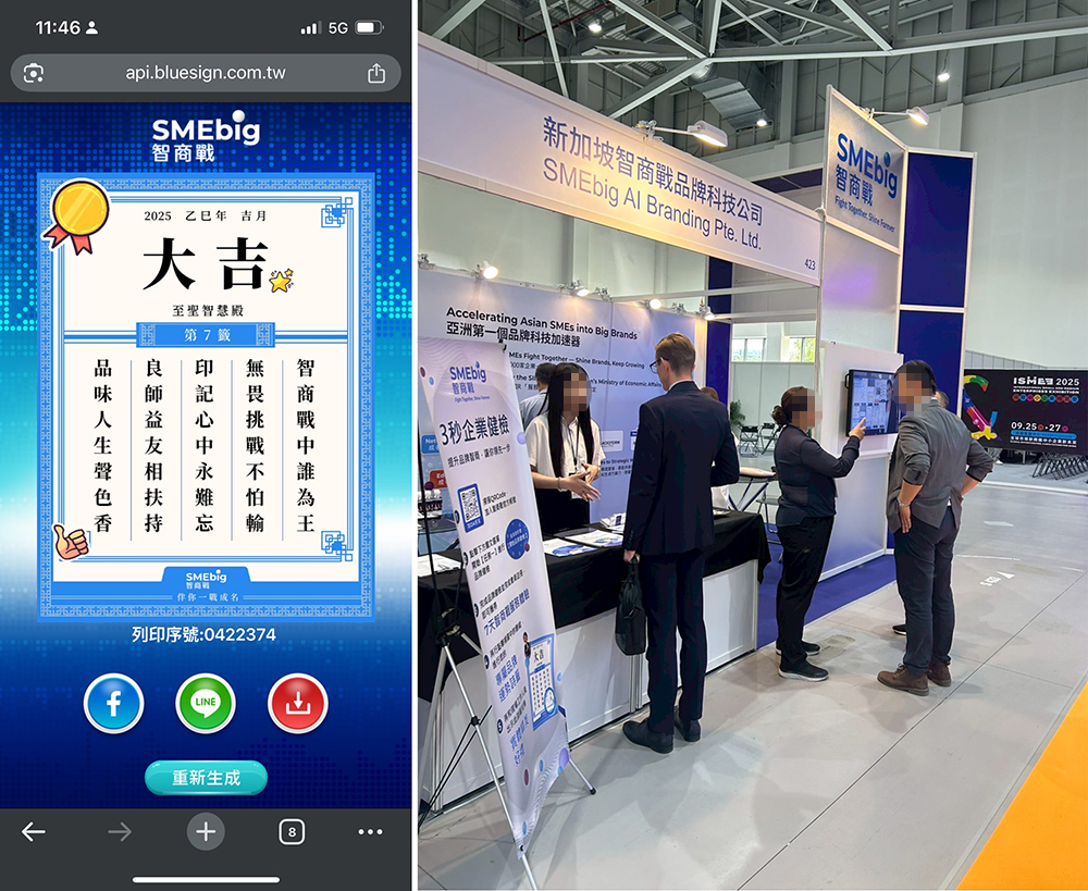 • ISMEE 2025 國際中小企業博覽會-智商戰SMEbig透過藍訊AI藏頭詩/籤詩互動應用,將品牌名稱轉化為獨一無二的個人化詩籤